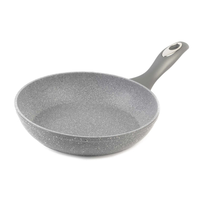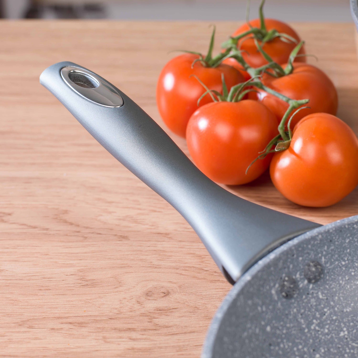 • The grey coloured frying pan looks clean and smart in your kitchen, with a Bakelite silicone coated handle to provide secure lifting.