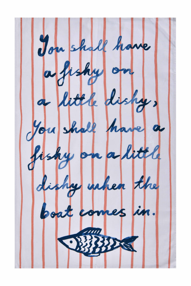 The cotton tea towel comes folded and packaged with a branded swing tag.